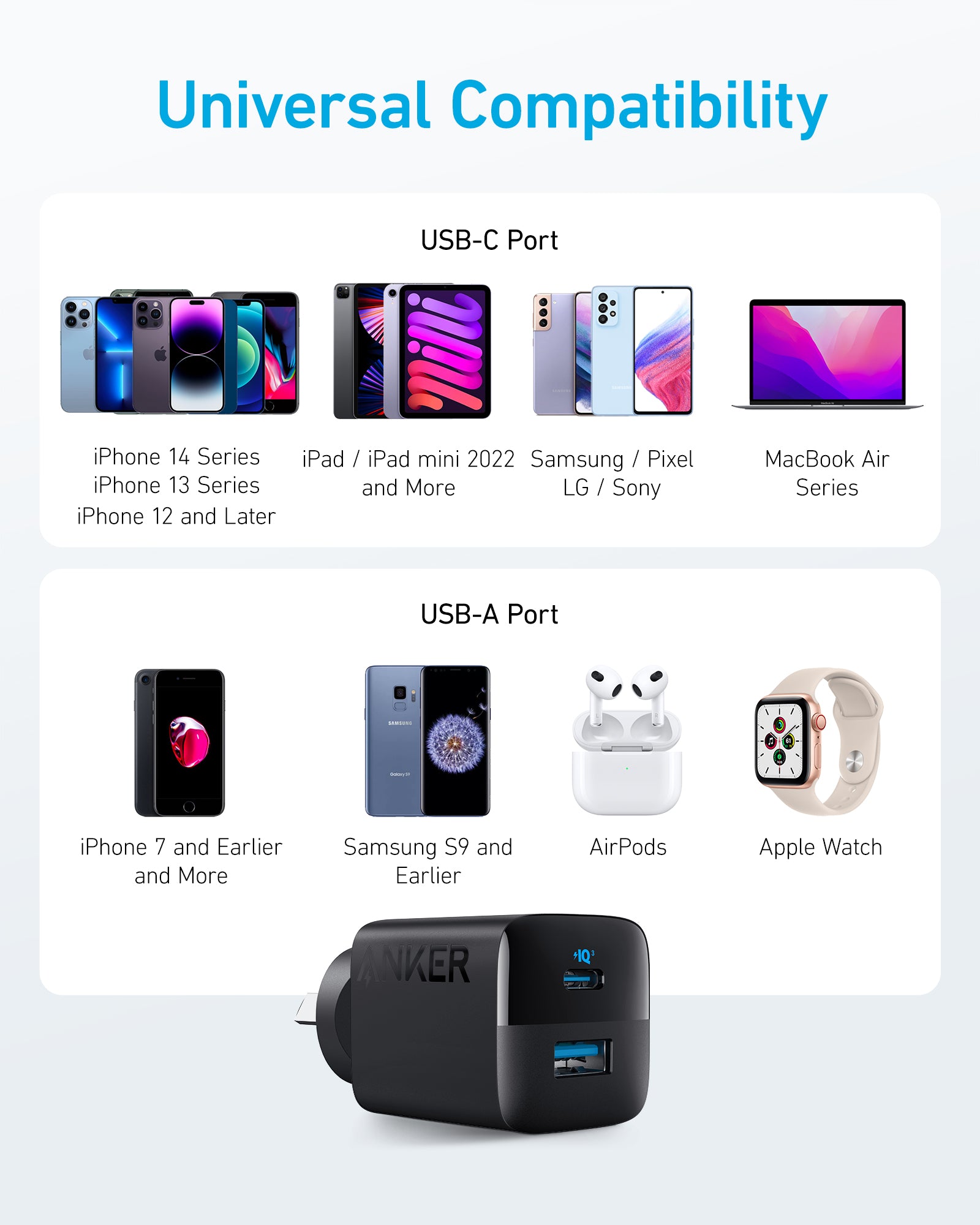 What You Get: Anker 323 Charger (33W), welcome guide, our worry-free 18-month warranty, and friendly customer service.