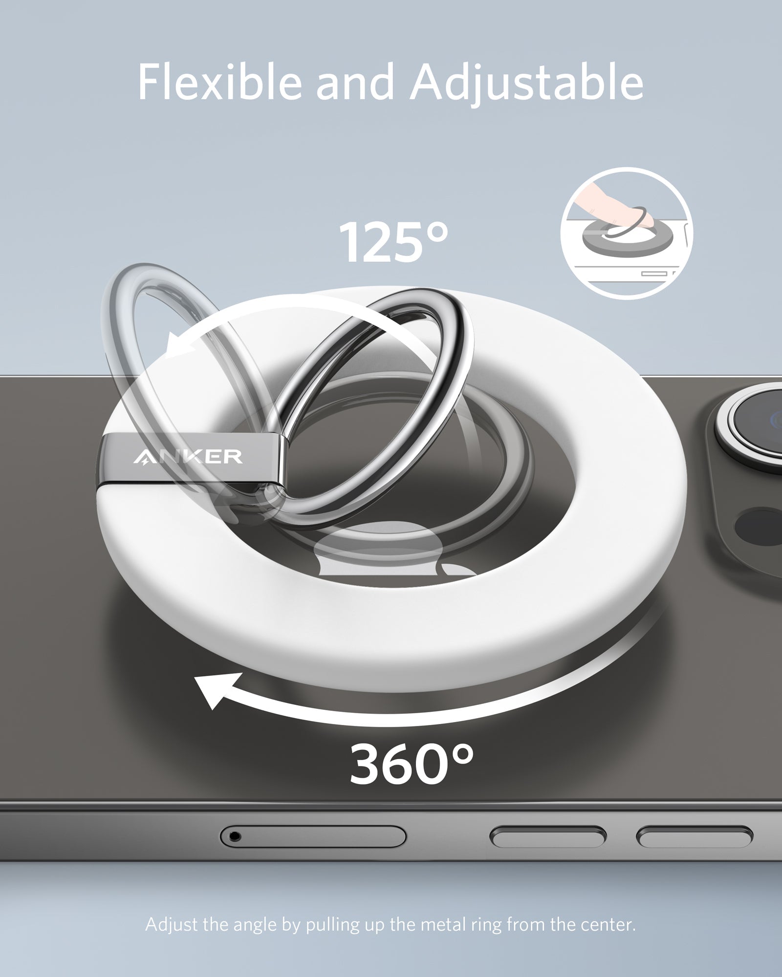 - The Right Angle: Easily rotate your ring holder 360° and flip it up to 125° for a comfortable grip or different viewing positions when placed on a tabletop.