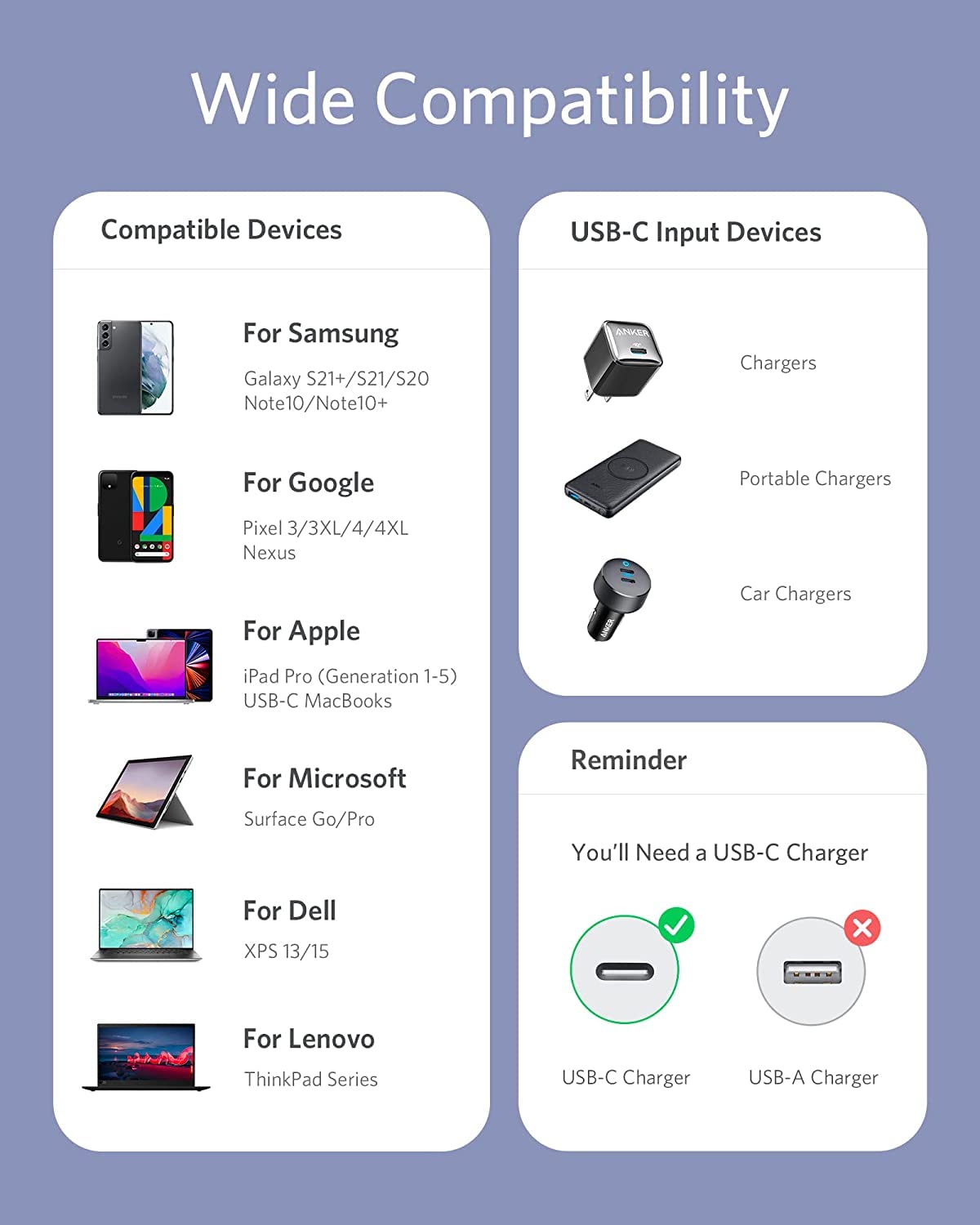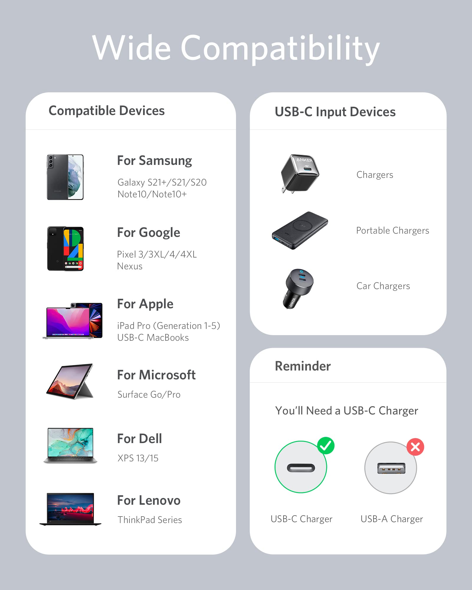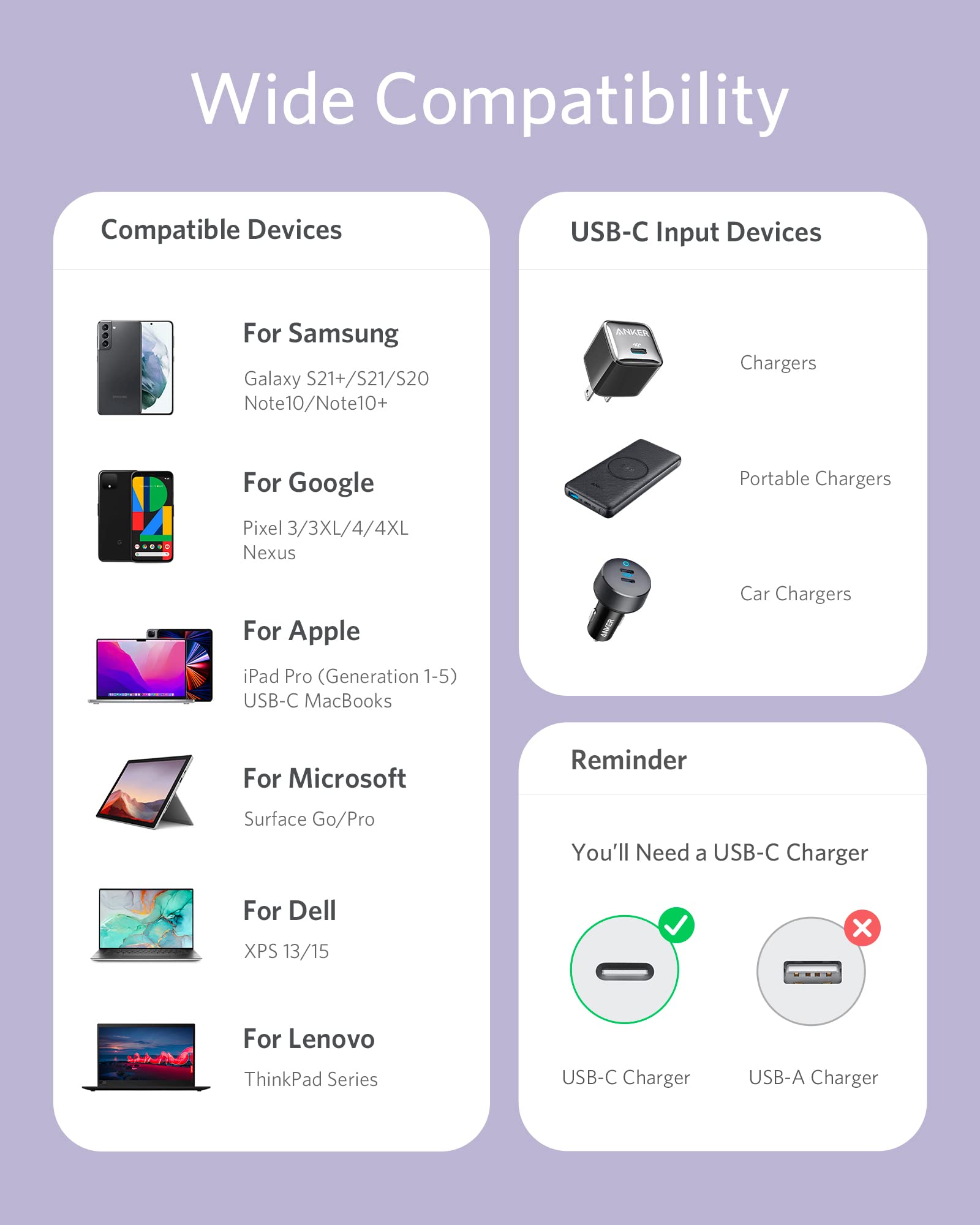 - Fast Charging: Supports a max power output of 100W when paired with a 100W or above wall charger to power up virtually any USB-C device, including phones, tablets, and laptops. (This cable does not support media display.)