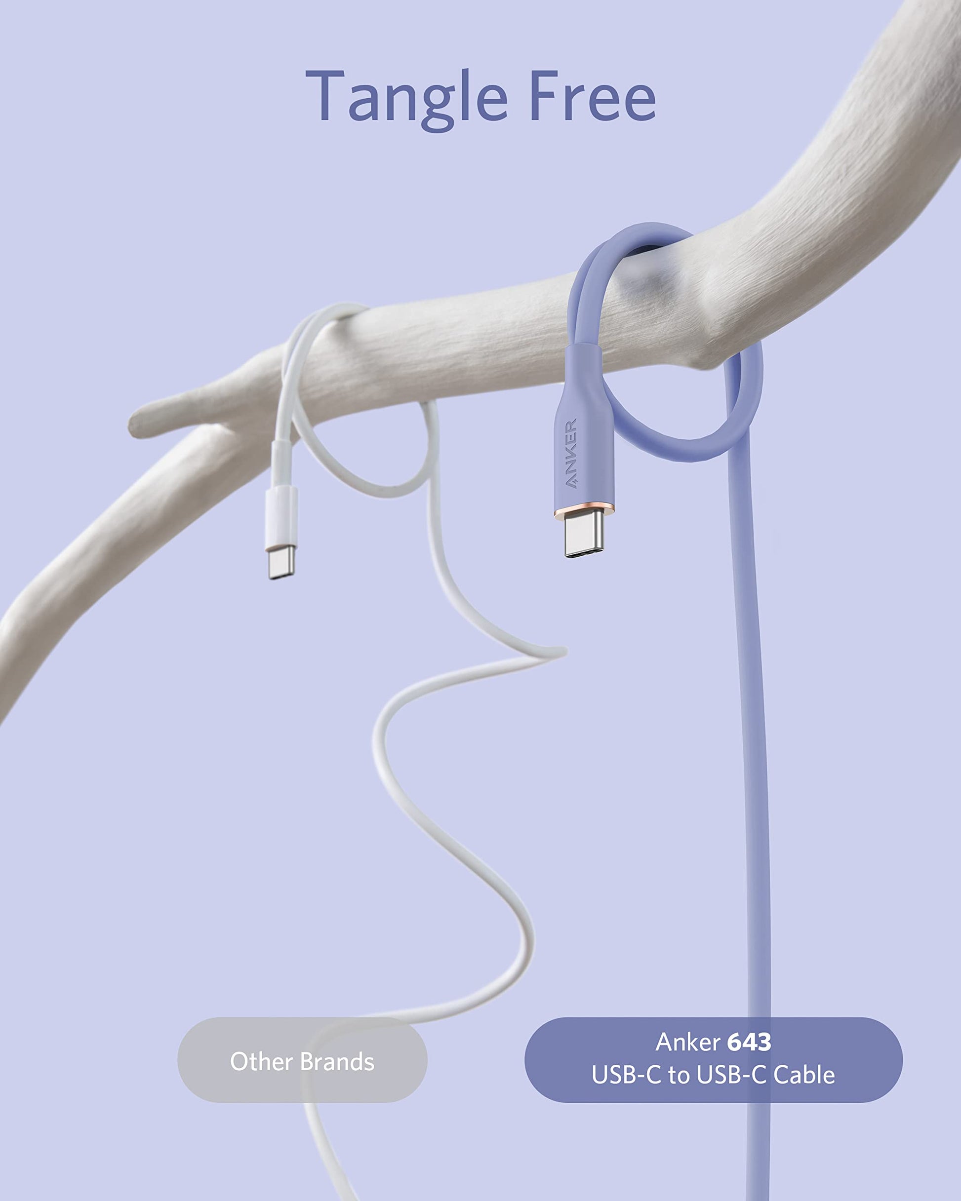 - What You Get: Anker 643 USB-C to USB-C Cable (Flow, Silicone) / PowerLine III Flow USB-C to USB-C Cable, silicone cable tie, welcome guide, our worry-free 18-month warranty, and friendly customer service.
