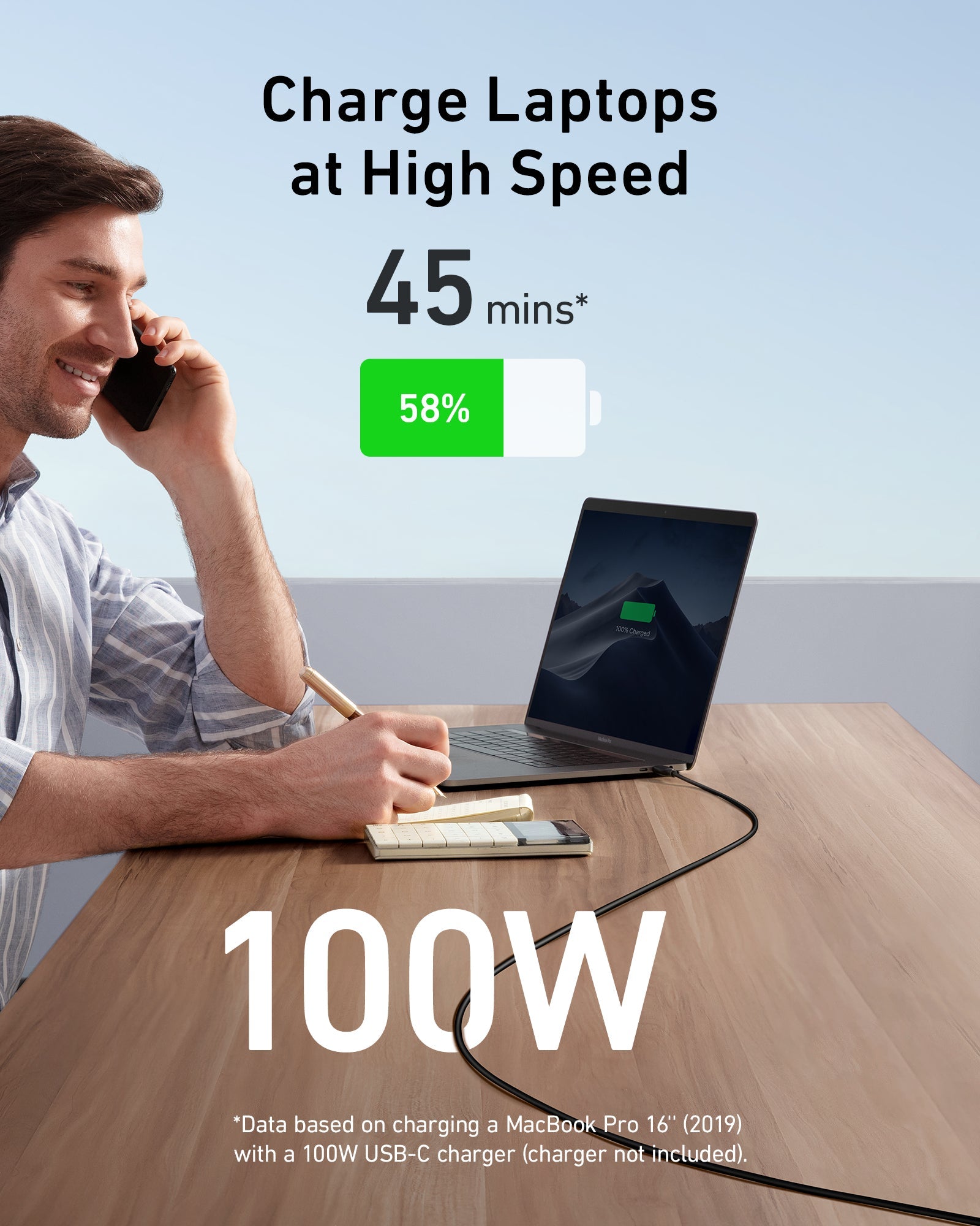 - High-Speed Compatible: If you’re in a hurry, pair up with a 100W charger to power up your MacBook Pro 16ʺ to 38% in just 30 minutes—that’s 58% faster than with a 60W charger and cable. (Charger not included).
